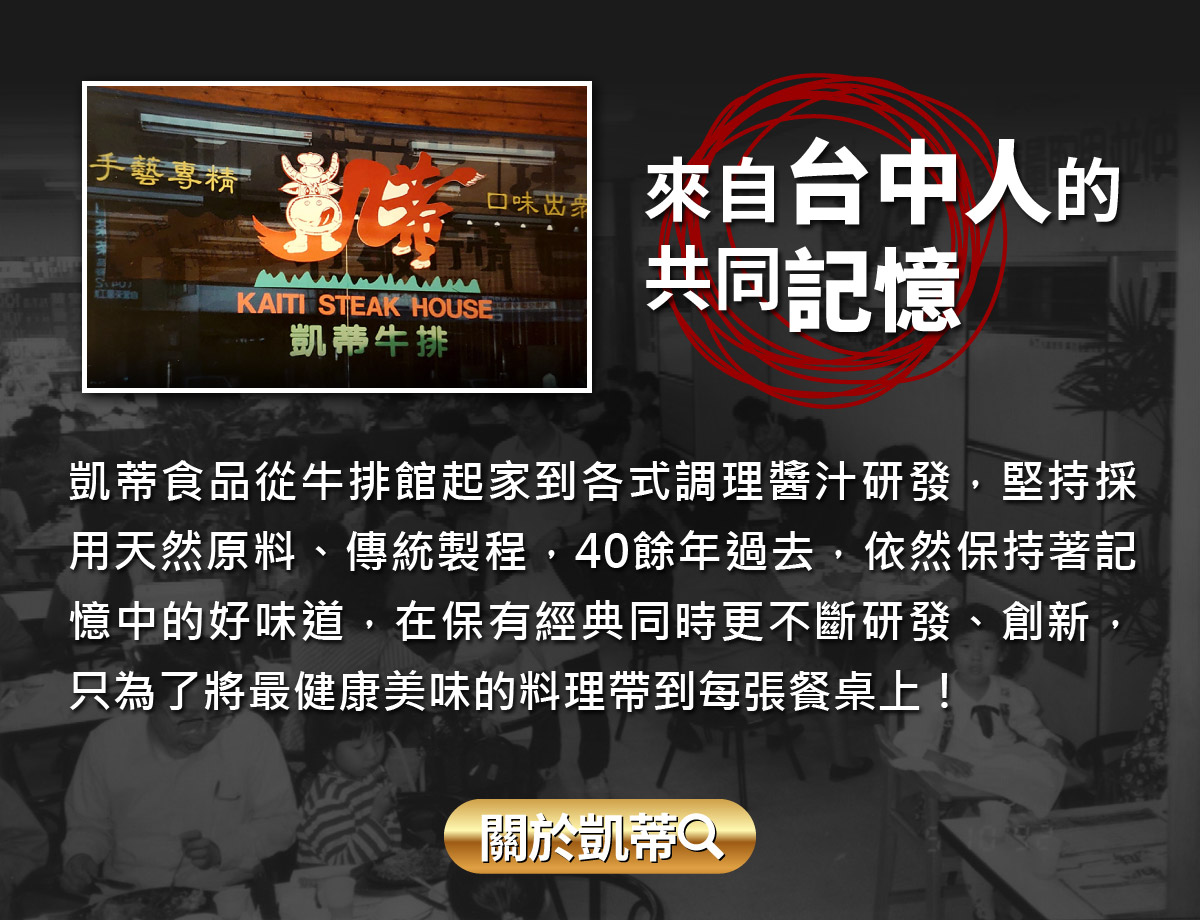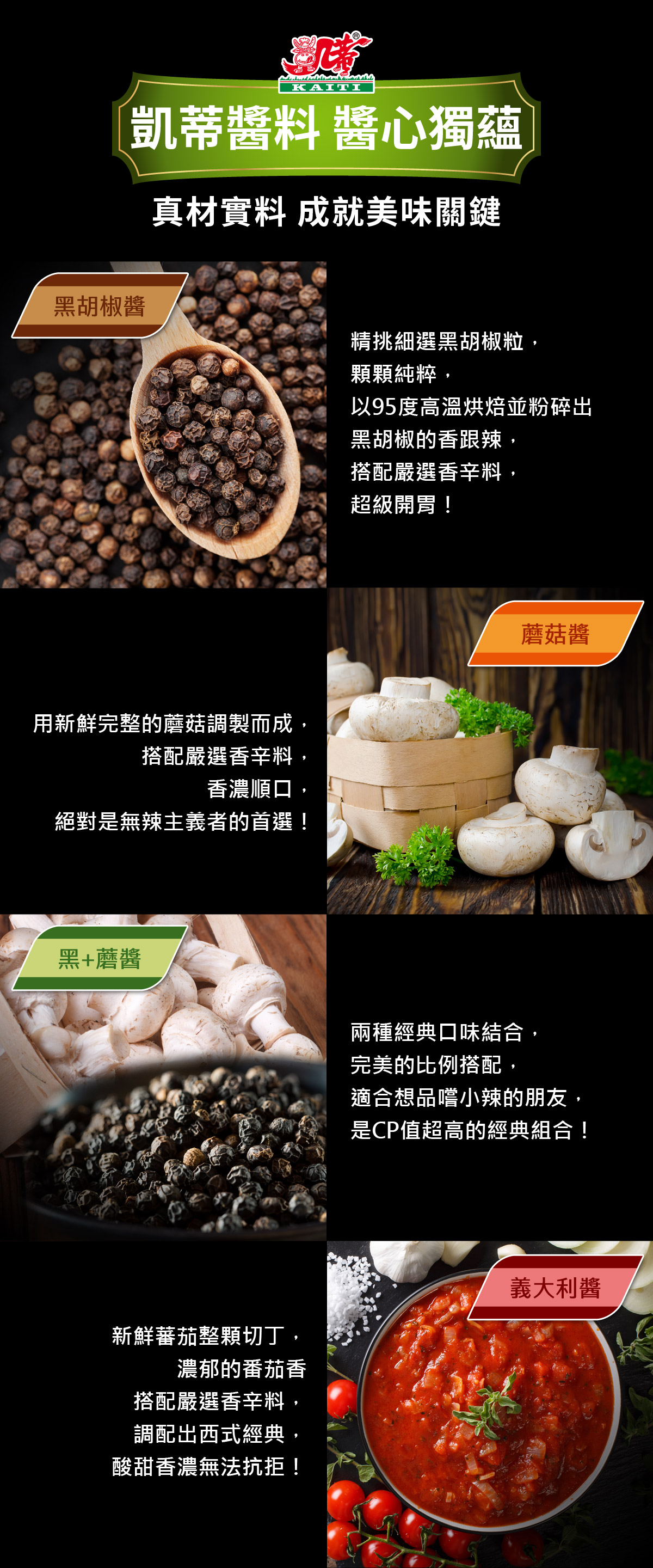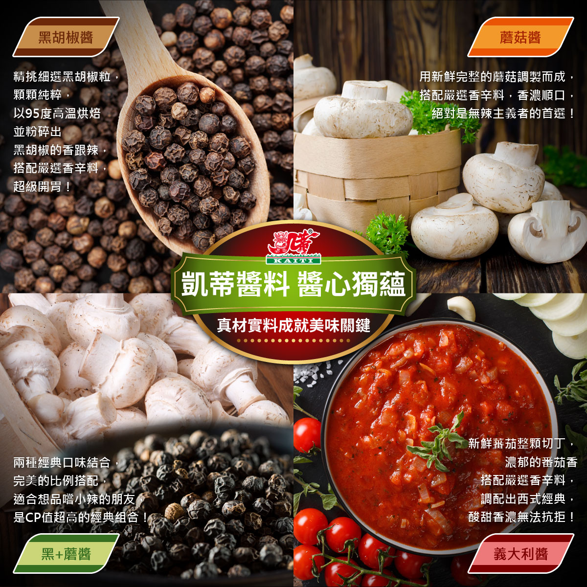 一道完美的佳餚,盡在醬汁的精調,讓凱蒂食品繽紛你的生活!真傳西餐原味,品質超卓道地。凱蒂餐飲調理食品採用傳統製程、自然取材、道地風味。天然純淨好醬料,健康美味好料理。