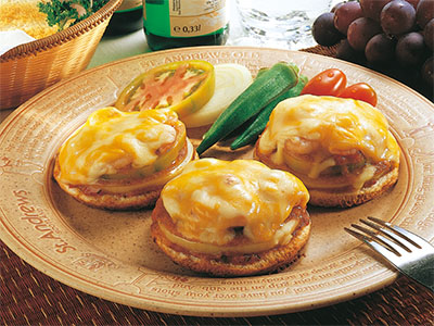 利用圓鐵空罐將土司切成圓形,均勻擦上大蒜奶油稍微烤乾再依序撒上乳酪粉及切碎洋蔥、碎蕃茄,擺上燙熟蝦仁再均勻淋上適量凱蒂義大利醬,再均勻鋪上乳酪絲後放入烤箱(上下火250℃)烤至熱透及乳酪絲溶化即可出爐,即呈現一道義大利鄉村傳統美食。